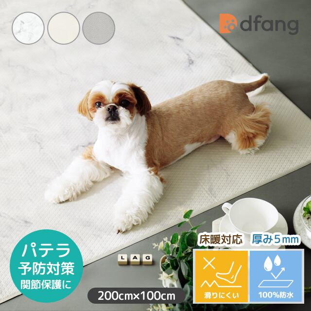 dfang ディパン【ペットプレイマット 厚み5mm ラグタイプ(200cm×100cm)3色柄】ペット専用防水クッションマット 抗菌 滑りにくい パテラ 膝蓋骨脱臼 関節保護 シニア犬 小型犬 中型犬